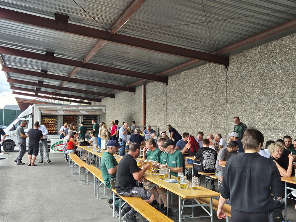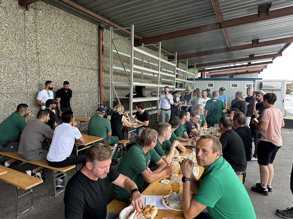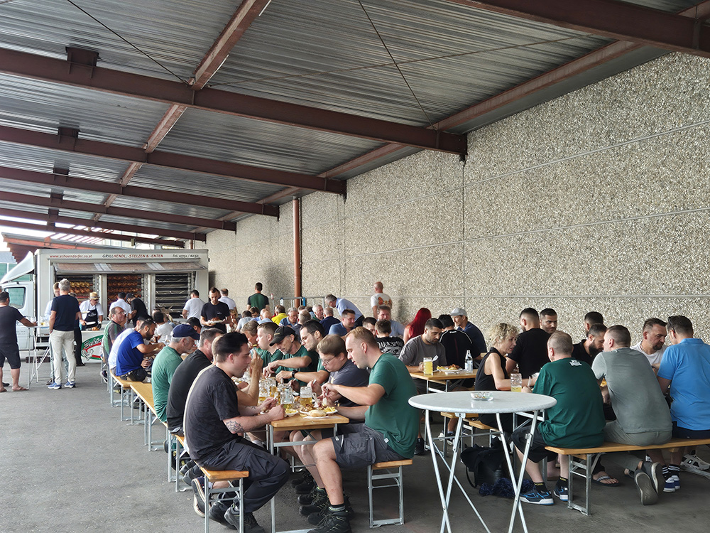 Am Freitag, den 27. Juni, haben wir den erfolgreichen Abschluss der ersten Sanierungsphase unserer Stahlhalle gefeiert. Rund 100 Mitarbeiterinnen und Mitarbeiter waren beim internen Baustellenfest dabei – mit lockerer Stimmung, gutem Essen und vielen Gesprächen.